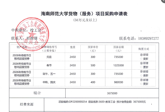 海南师范大学货物(服务)项目采购申请表(传统节日)