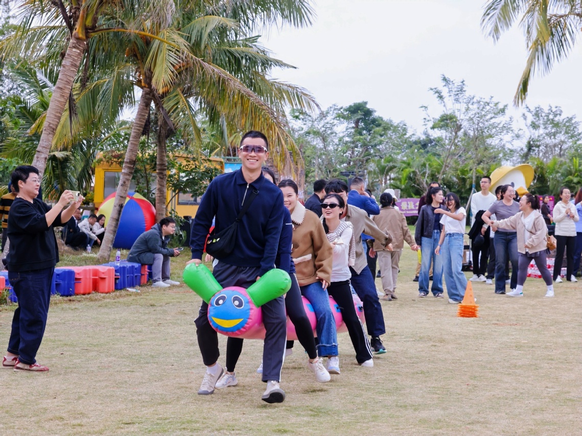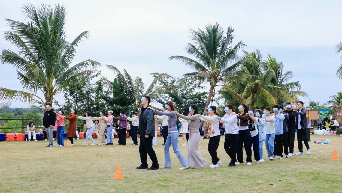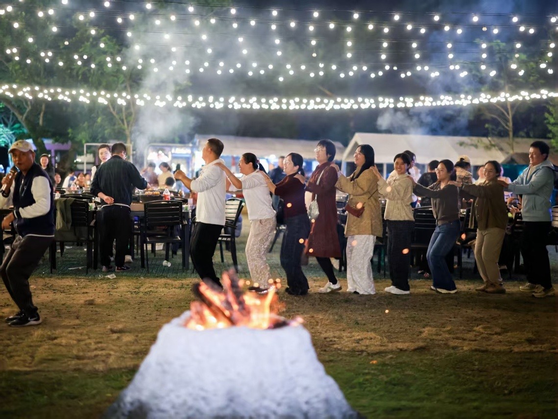 谭丰洋湿地公园草木葱茏、水光潋滟,天然氧吧为活动注入清新活力。青年教职工们漫步栈道,饱览湿地风光,在自然景致中放松身心;互动游戏环节精彩纷呈,珠行万里的默契传递、旱地龙舟的同心竞速、拆弹专家的思维碰撞,大家在趣味竞技中默契配合、奋勇争先,充分展现团队协作精神与青春风采;K歌环节里,大家一展歌喉,欢声笑语此起彼伏,进一步拉近了彼此距离。夜幕降临,篝火燃起,全体人员围着篝火载歌载舞,晚宴上畅聊工作与生活,校际情谊在温馨互动中持续升温。