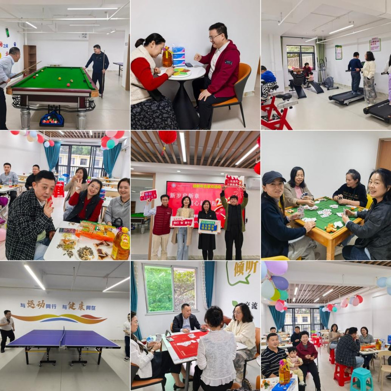 丰富多彩的文体娱乐活动正式拉开帷幕。活动场地内分区有序,热闹非凡:乒乓球台前,银球飞舞,扣杀与防守精彩纷呈;台球桌旁,教职工们凝神静气,精准击球,尽显优雅与智慧;棋牌区内,跳棋的巧妙迂回、五子棋的步步为营以及掼蛋比赛的默契配合,无不吸引着大家踊跃参与,围观者亦不时发出赞叹或善意的笑声;健身区内,老师们利用各类器材进行舒缓拉伸或适度锻炼,在运动中释放压力,焕发活力;一旁的按摩室则为辛勤工作一年的教职工提供了放松身心的空间。活动现场特别设置了自由交流区,成为一道温馨的风景线。平日忙于教学科研的老师们,借此机会围坐一起,畅叙情谊。话题从工作自然延伸到生活,分享家庭趣事、育儿经验,乃至时事见闻、养生之道。谈笑风生间,同事之情愈发深厚,工作与生活的智慧在轻松愉快的氛围中得以交汇与共鸣。