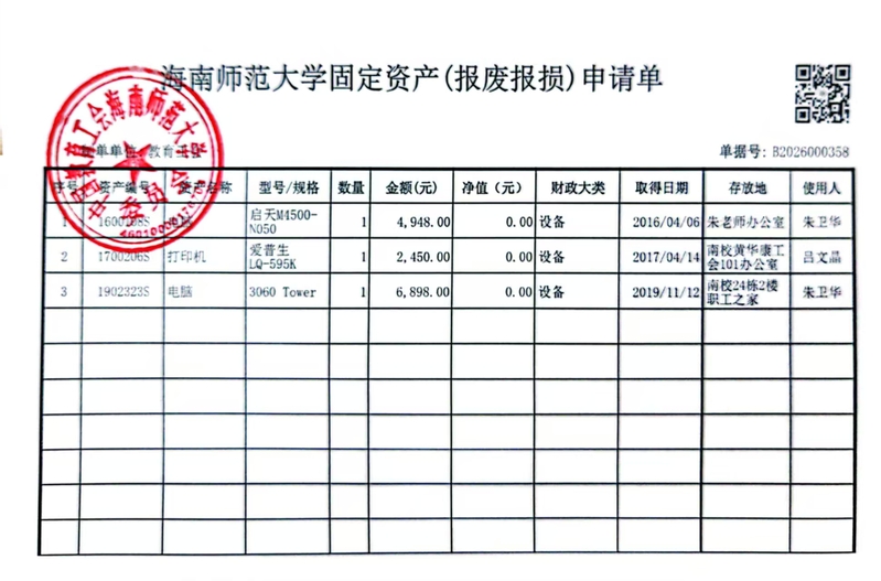 固定资产(报废报损)公示
